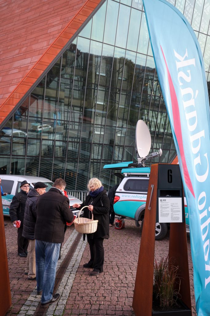 W naszym wozie transmisyjnym czekał na gości Bartosz Stracewski. Jako pierwszy odwiedził go Wojciech Łukaszun, kierownik Działu Zbiorów Muzeum II Wojny Światowej, który opowiedział mu i naszym słuchaczom o zabytkach, jakie będą prezentowane na placu Muzeum II Wojny Światowej 11 listopada.