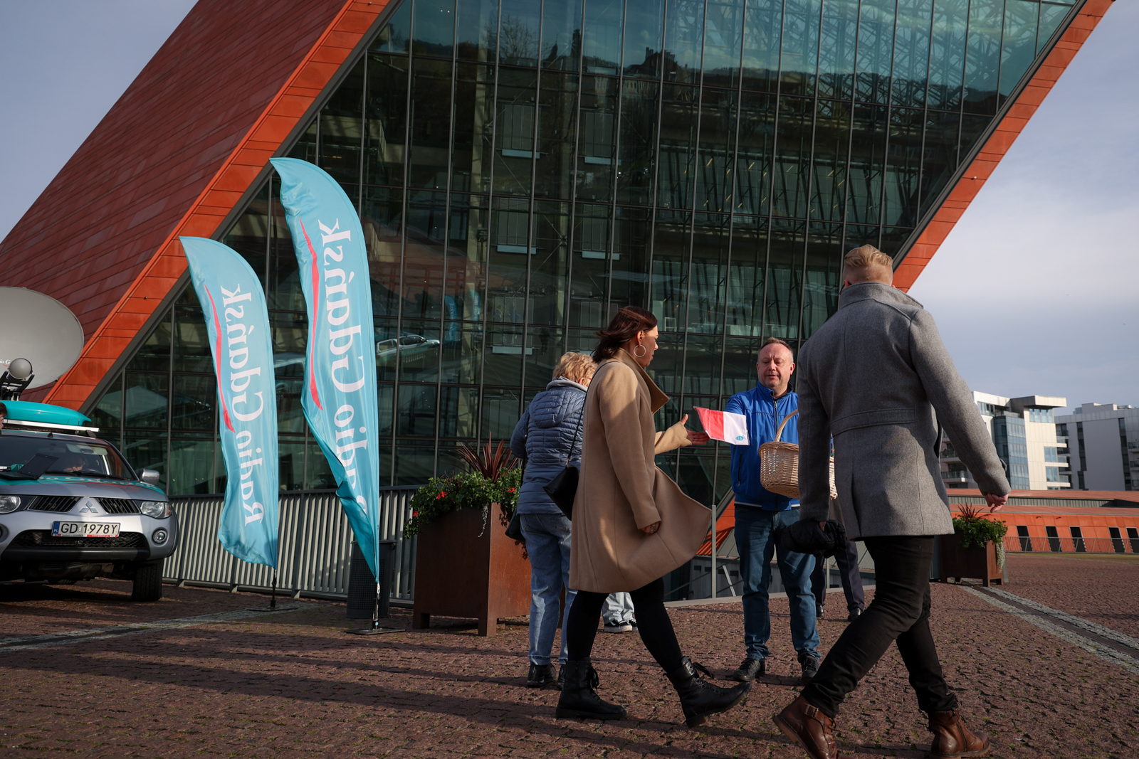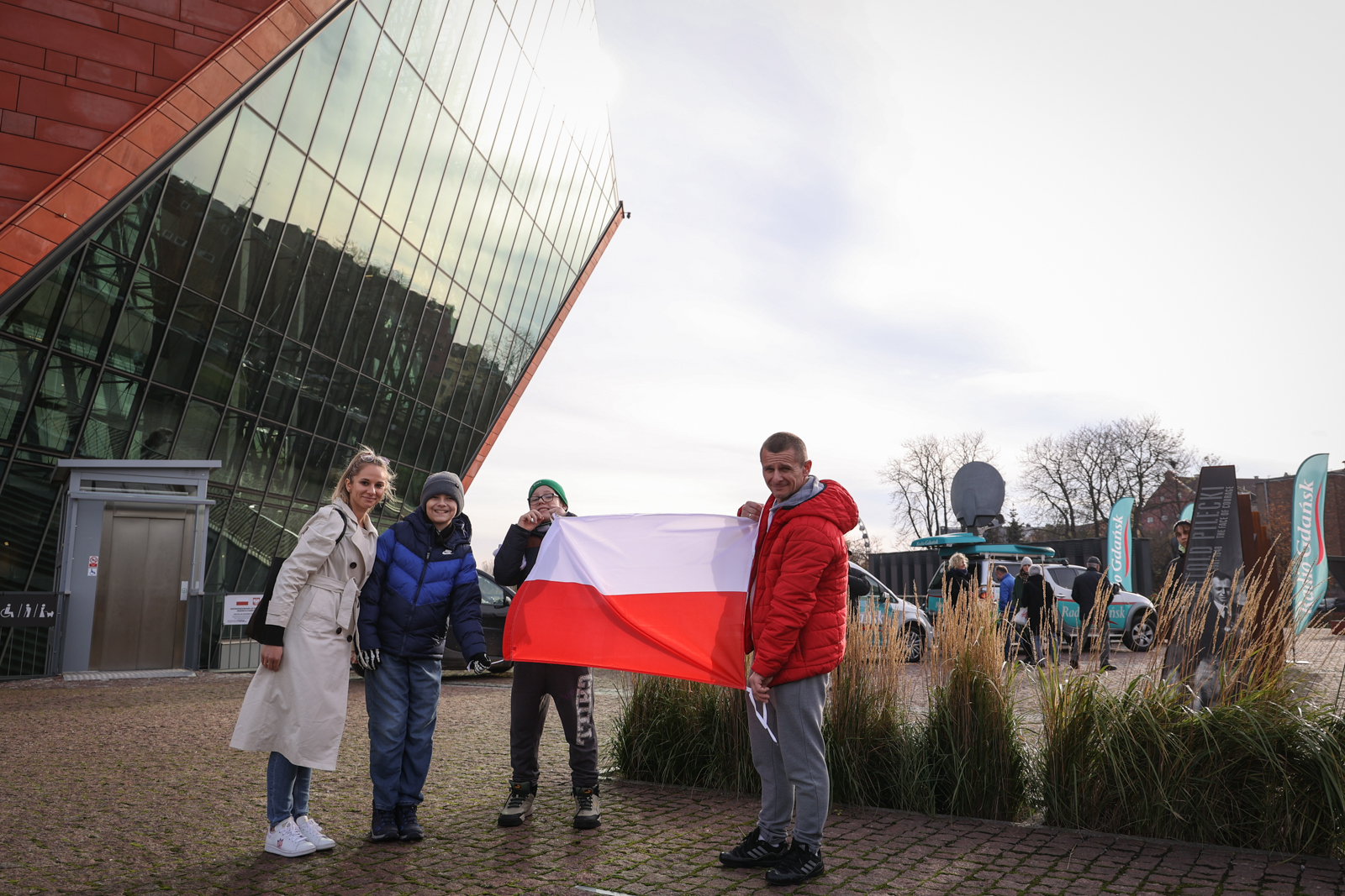 10 listopada kontynuowaliśmy odbywającą się z okazji jutrzejszego Narodowego Święta Niepodległości akcję rozdawania biało-czerwonych flag. Tym razem nasz wóz transmisyjny zajechał przed Muzeum II Wojny Światowej.