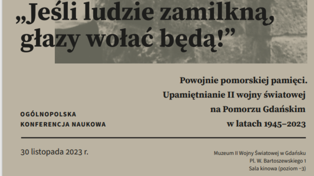 W czwartek w sali kinowej Muzeum II Wojny Światowej odbyła się ogólnopolska konferencja naukowa pod tytułem „Jeśli ludzie zamilkną, głazy wołać będą. Powojnie pomorskiej pamięci. Upamiętnienie II wojny światowej na Pomorzu Gdańskim w latach 1945-2023”. Wydarzenie jest częścią cyklu „Pomorze Gdańskie pod okupacją 1939-1945”.