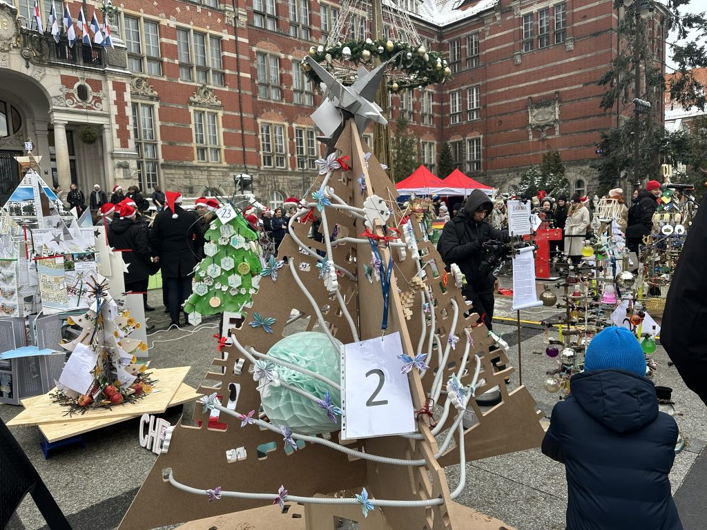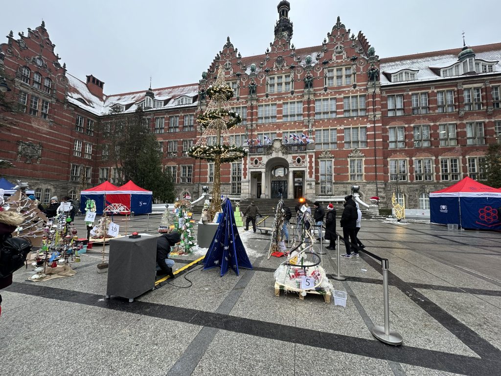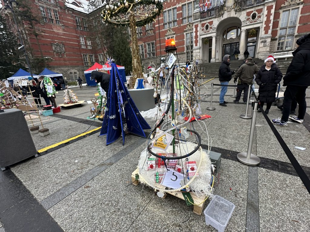 Ponad 20 zespołów złożonych z pracowników i studentów Politechniki Gdańskiej miało kilka godzin na stworzenie unikalnego drzewka świątecznego, a ich jedynym ograniczeniem była kreatywność. Ekipy używały do stworzenia eko-inki przeróżnych rzeczy, od papieru toaletowego po słoiki.