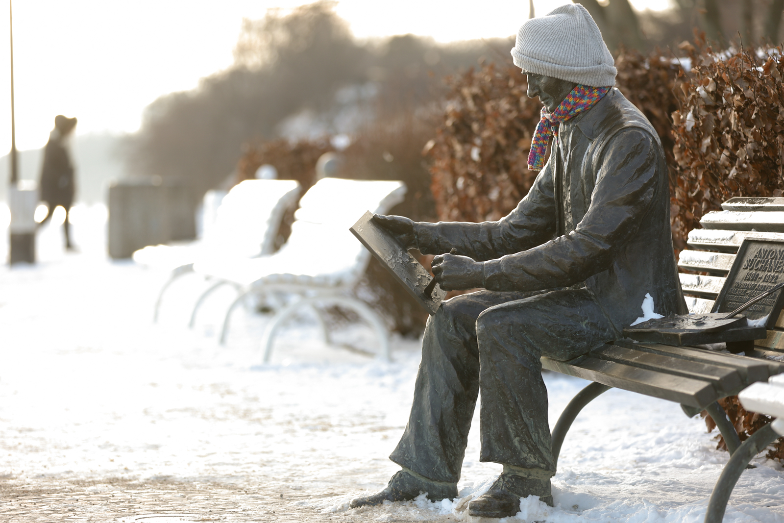 Na koniec przechadzki warto zaś przysiąść na znajdującej się niedaleko molo ławeczce Antoniego Suchanka, upamiętniającej polskiego malarza-marynistę, który przez wiele lat mieszkał w Orłowie.