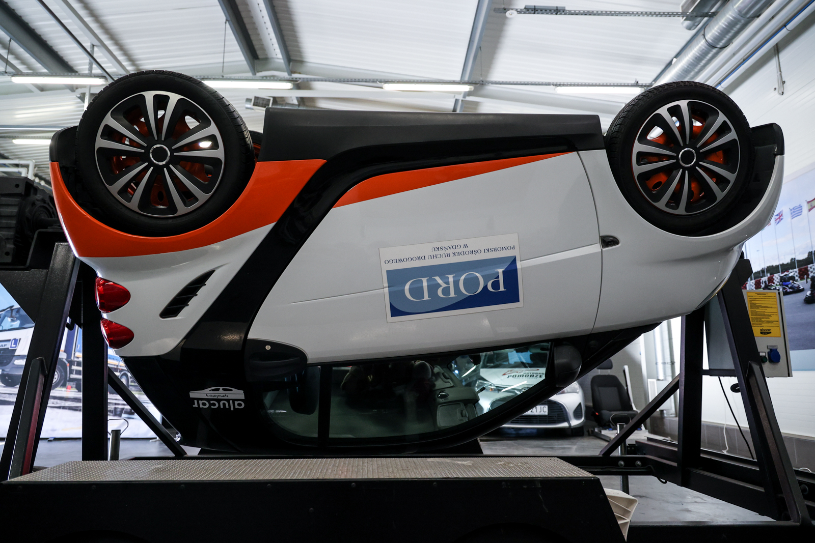 – To m.in. korzystnie z refleksomierza oraz alkogogli, możliwość skorzystania z symulatora dachowania oraz symulatora zderzeń – tutaj przy tym punkcie wskazujemy, jak ważne jest zapinanie pasów bezpieczeństwa zarówno kierowcy, jak i pasażerów znajdujących się w samochodzie – a ostatnim kluczowym elementem naszego szkolenia jest najazd na płytę poślizgową. Tutaj w sytuacji osób, które mają prawo jazdy kategorii B, które należy okazać w dniu szkolenia, najazd będzie wykonywany przez ucznia pod nadzorem instruktora techniki jazdy. W przypadku uczniów, którzy nie posiadają tego dokumentu, najazd będzie wykonany przez instruktora techniki jazdy, a uczeń będzie pasażerem – dodaje Roman Nowak.