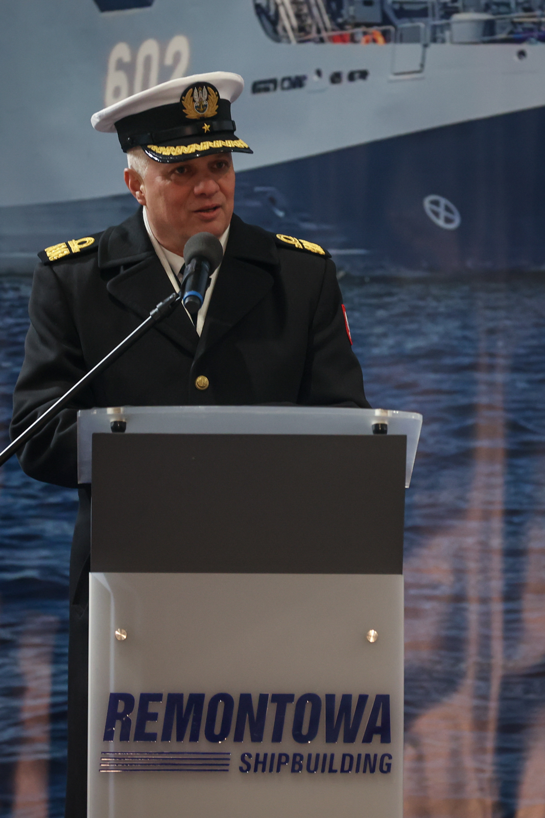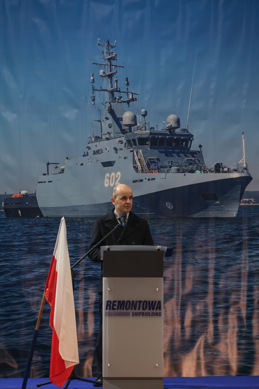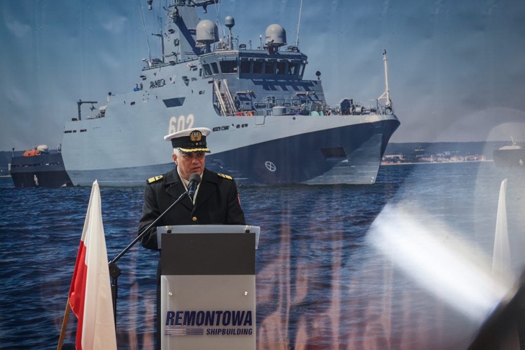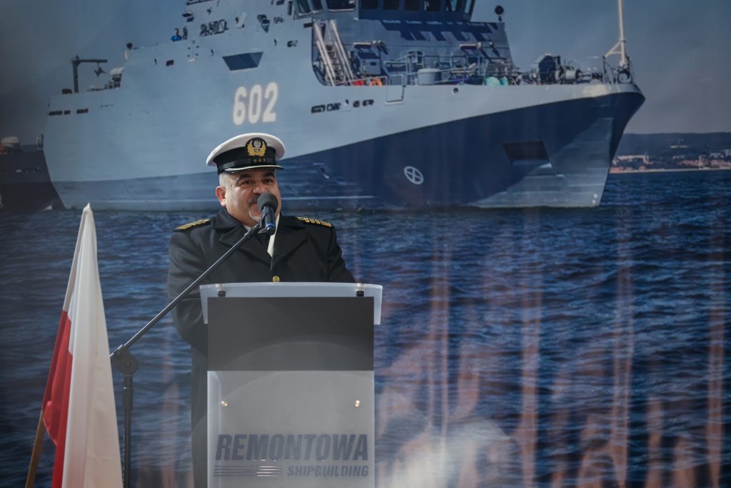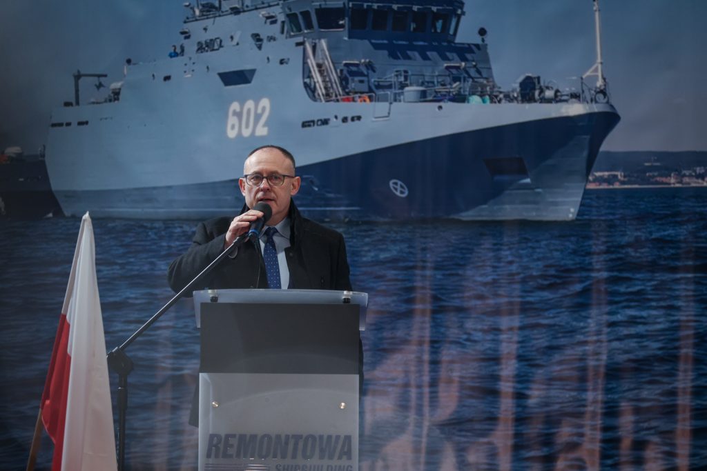 – Okręt będzie gotowy do wejścia do służby w 2027 roku – zapowiada wiceprezes stoczni Remontowa Shipbuilding Bartłomiej Pomierski.