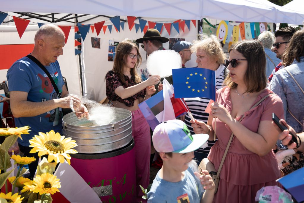 – Nikogo nie trzeba było namawiać. Wystarczyła informacja, że chcemy zrobić piknik z targami państw członkowskich i w sześć dni zebraliśmy komplet, czyli piknikowych przedstawicieli 27 krajów Unii Europejskiej. Do tego zgłosili się także inni partnerzy, jak Komitet Obrony Demokracji czy Samorząd Województwa Pomorskiego, który chciał pokazać, jak zmieniało się Pomorze na przestrzeni 20 lat w UE – mówił na antenie Dawid Jastrzębski.