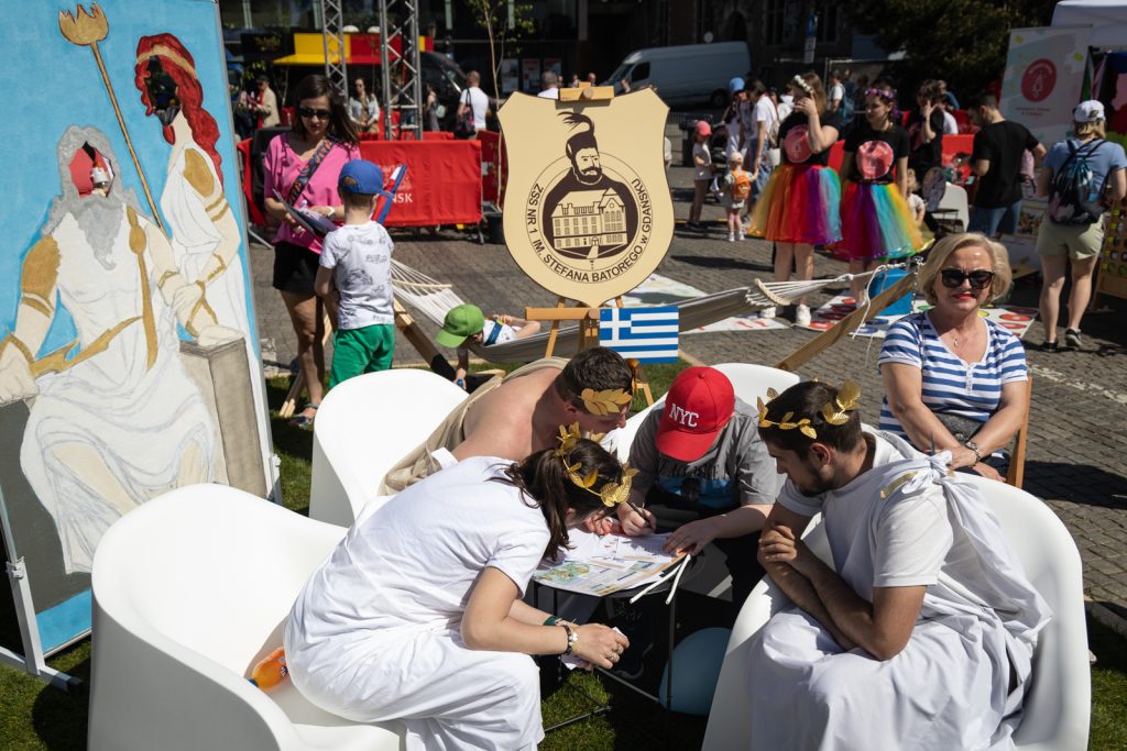 – Zapraszamy do nas. Można spróbować pysznych greckich paluchów, rozwiązać zagadki i zrobić sobie piękne zdjęcia z bogami, w tym z samym Zeusem czy boginią mądrości Ateną. Staraliśmy się oddać grecką atmosferę w ten przepiękny dzień, kiedy obchodzimy 20-lecie przystąpienia Polski do Unii Europejskiej – mówi pan Dariusz.