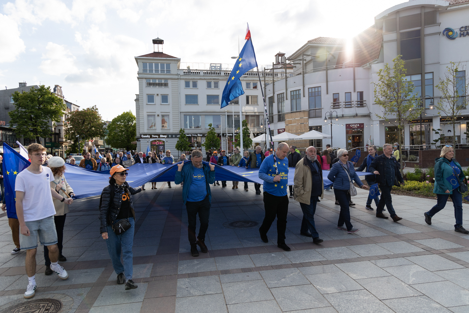 Marsz rozpoczął się na placu przy kościele św. Jerzego w Sopocie, na „szczycie” Monciaka. Królowały niebieskie barwy i żółte gwiazdki. Uczestnicy wyposażeni byli w koszulki i chorągiewki z symbolami Unii Europejskiej.