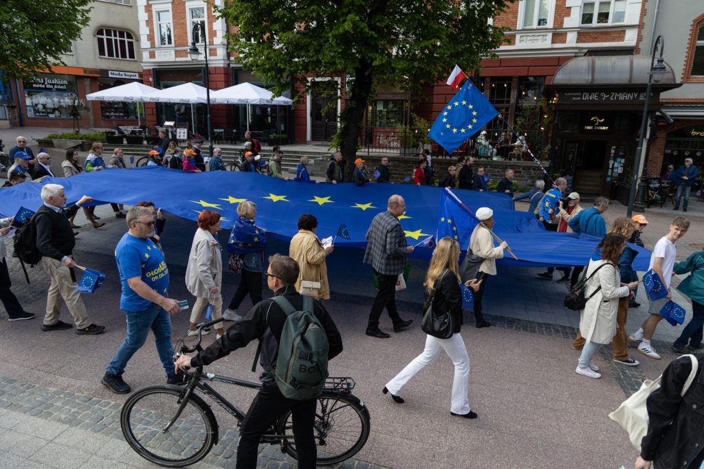 Dzień Europy świętowano w czwartek w Sopocie. Popularnym Monciakiem przeszło kilkadziesiąt osób, niosąc ogromną flagę Unii Europejskiej. Dokładnie 74 lata temu Robert Schuman wygłosił słynną deklarację uznawaną za początek integracji europejskiej.
