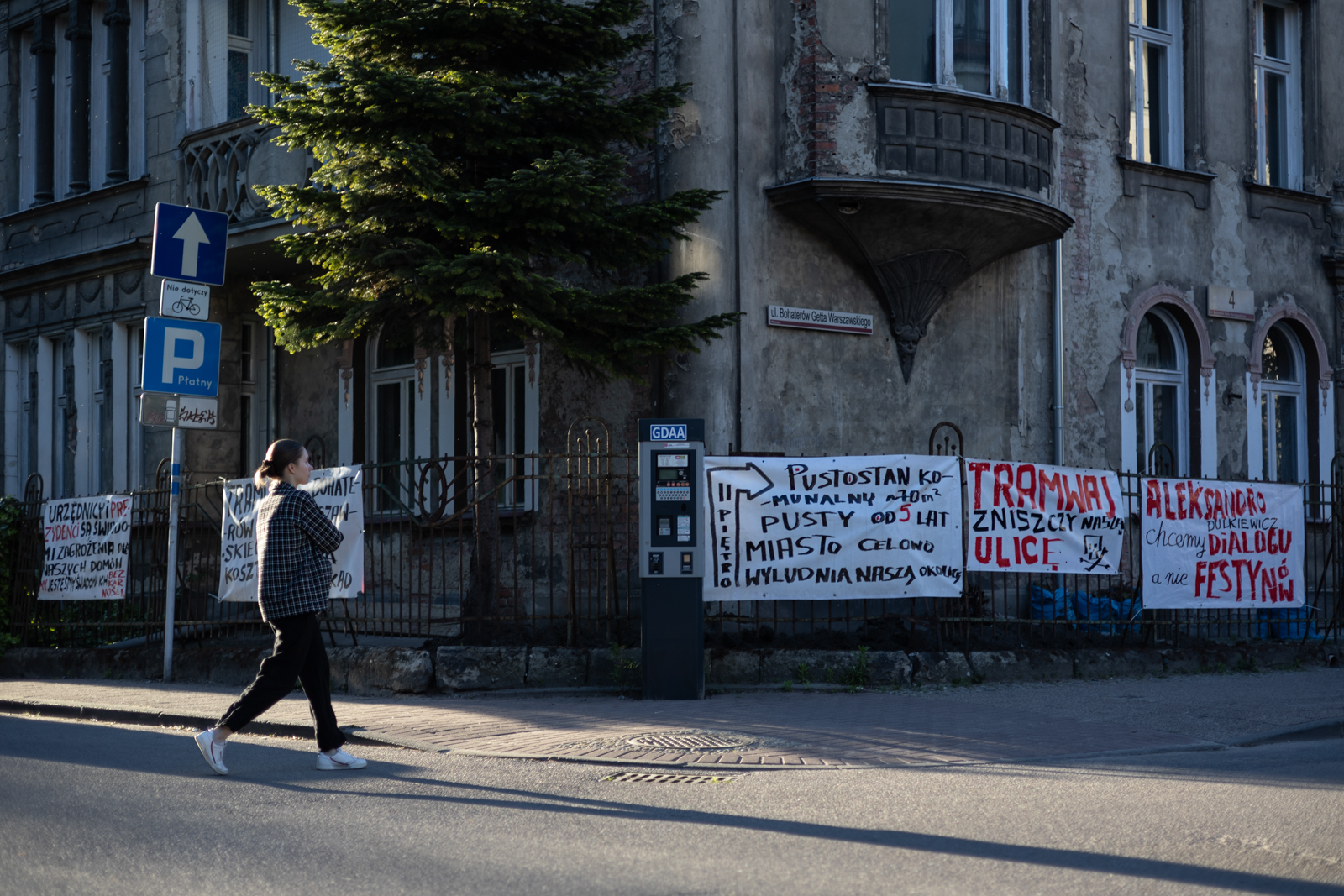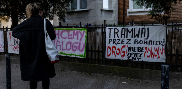 „Nie dla slalomu tramwajowego”, „żądamy ujawnienia ukrywanej dokumentacji” czy „boimy się, że nasze domy się zawalą” – transparenty z m.in. takimi hasłami pojawiły się na ul. Bohaterów Getta Warszawskiego w Gdańsku. To kolejna odsłona protestu mieszkańców, którzy nie chcą, by przez ich wąską uliczkę przebiegała część nowej trasy tramwajowej łączącej Piecki/Migowo i Wrzeszcz.