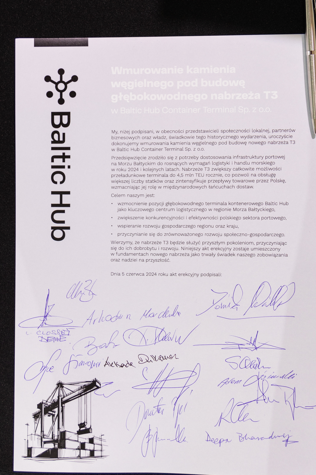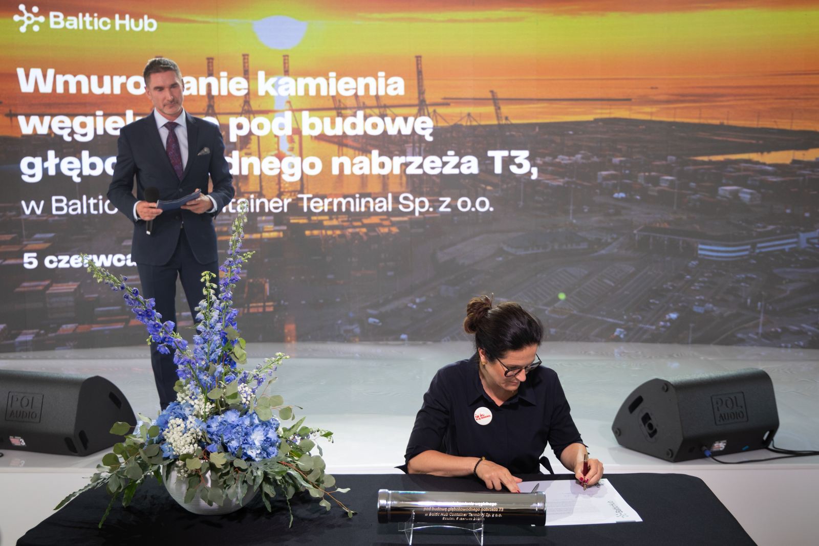 05.06.2024, Gdańsk. Uroczystość Wmurowania Kamienia Węgielnego pod budowę nowego nabrzeża T3 Baltic Hub Container Terminal. (fot. Radio Gdańsk/Roman Jocher)