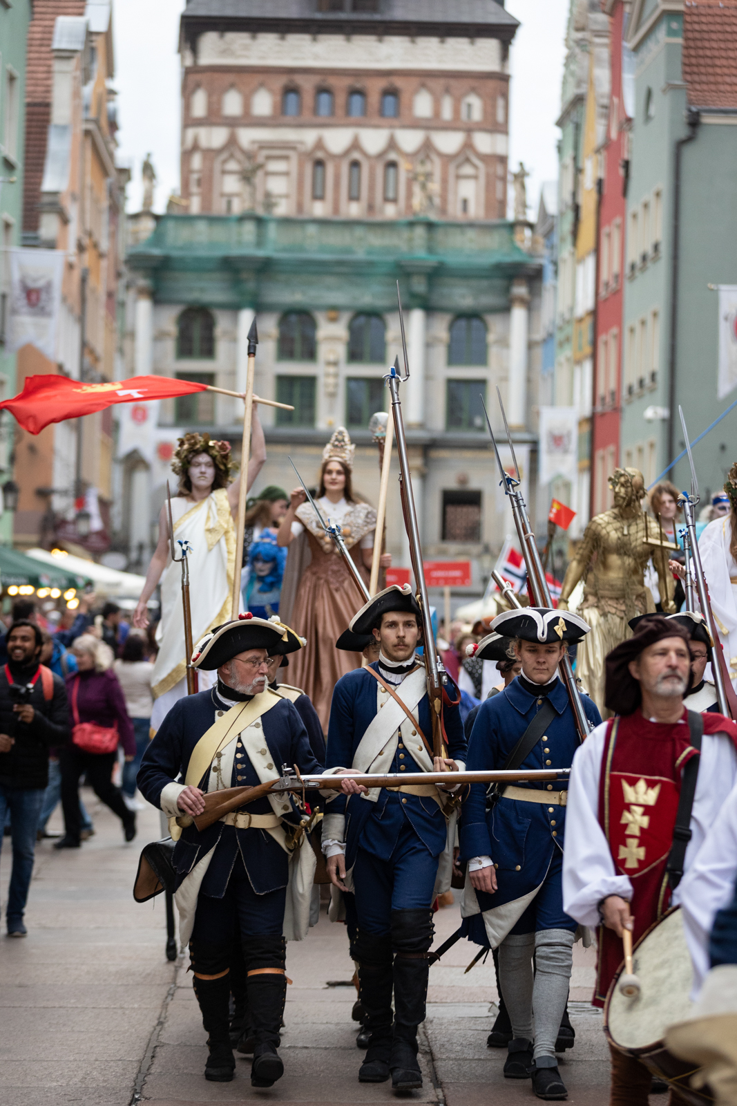 Oprawę artystyczną zapewnił Teatr Gdańskiego Archipelagu Kultury, nie zabrakło więc m. in. fantastycznych postaci na szczudłach. Na czele przemarszu wędrowały Wolność i Sława – reprezentanki ośmiu Gdańskich Alegorii. Za nimi maszerowali żołnierze Garnizonu Gdańskiego, dawni strażnicy bram miasta oraz gdańscy werbliści. Nawet król mórz, Neputun, opuścił fontannę na Długim Targu i dołączył do orszaku, prowadząc swój dwór. Pojawiły się też postacie bogatych mieszczan, straganiarek, kupców i rzemieślników z ulic hanzeatyckiego Gdańska.