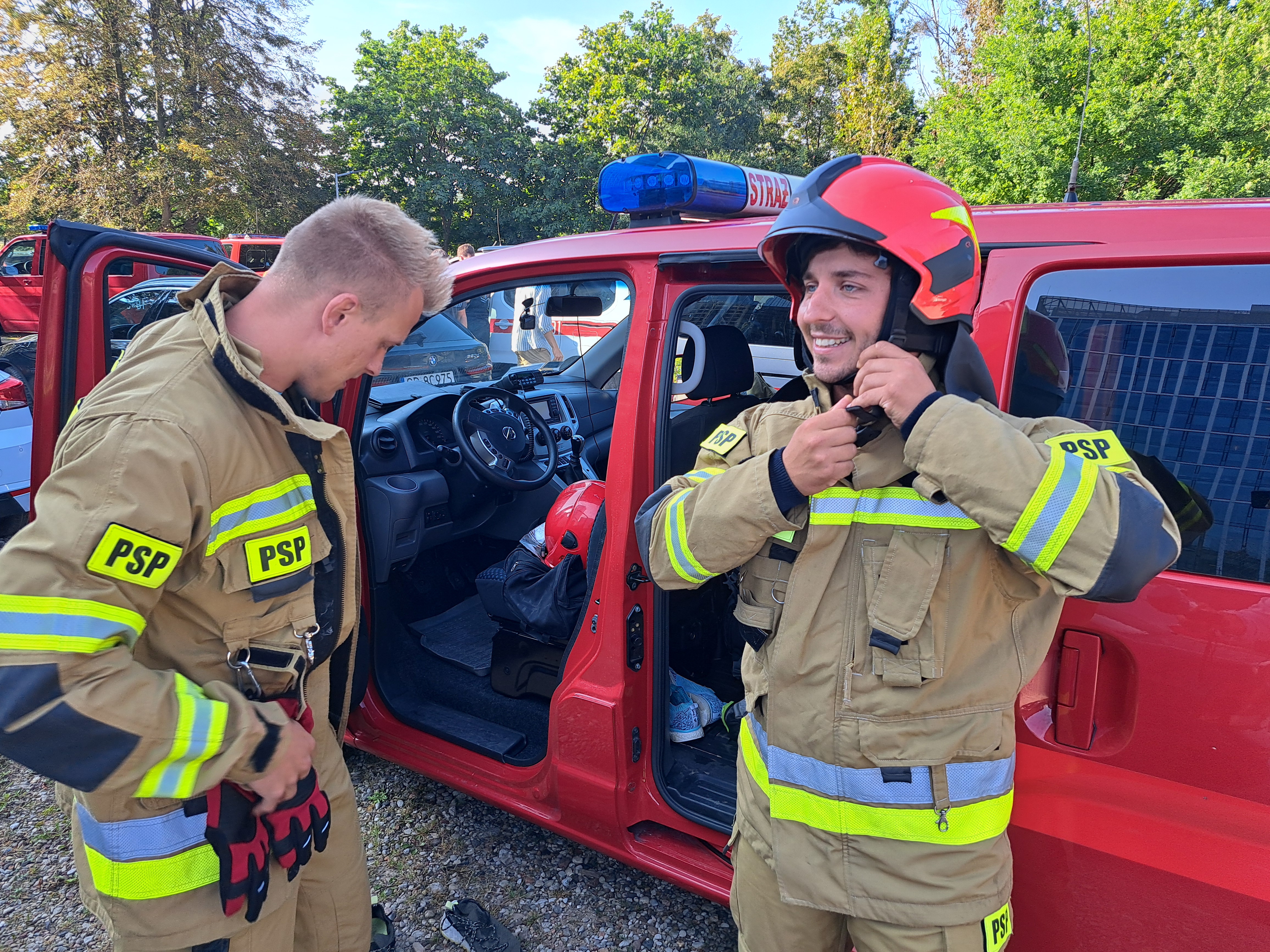 – Można powiedzieć, że to tylko około 10 minut wysiłku, a ledwo żyjemy. Ciągniemy na górę cały sprzęt, odcinki wężowe i prądownicę, wysiłek jest zdecydowanie znaczny – podkreślił jeden ze strażaków.