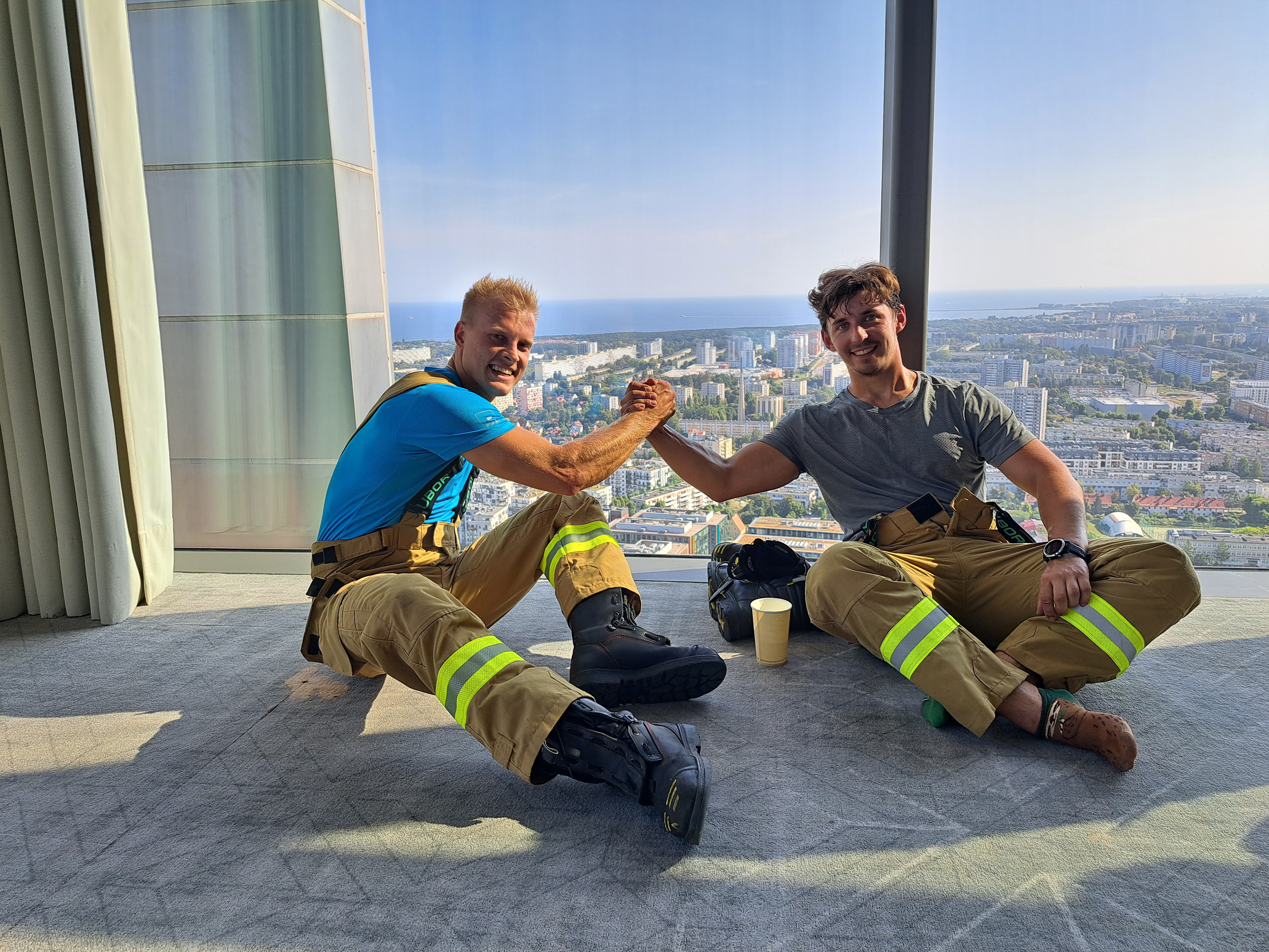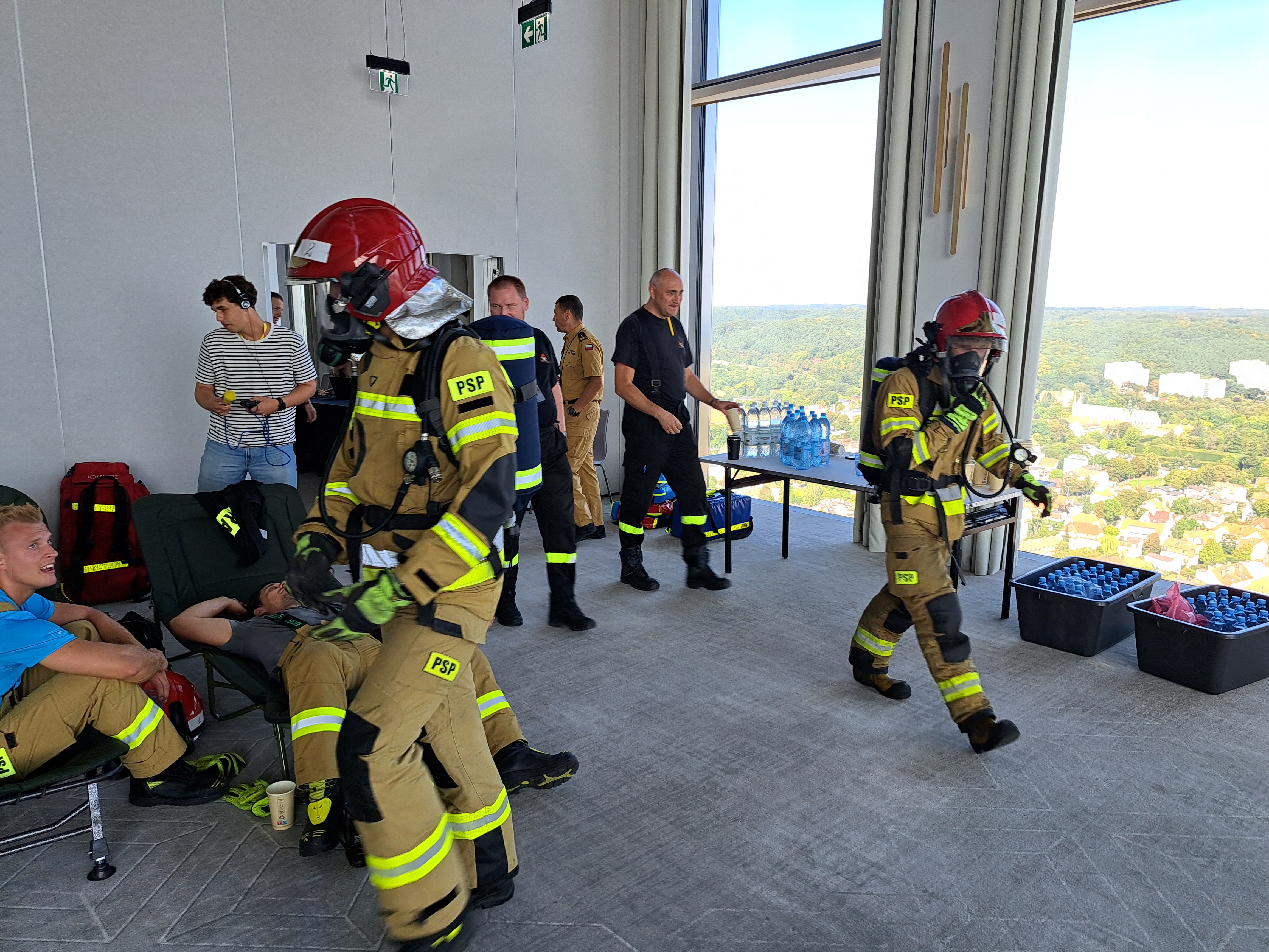 Tymczasem w Olivia Business Centre w Gdańsku odbywa się II Pomorski Bieg Strażaków po Schodach oraz VII Mistrzostwa województwa pomorskiego strażaków Państwowa Straż Pożarna i OSP w biegu po schodach.