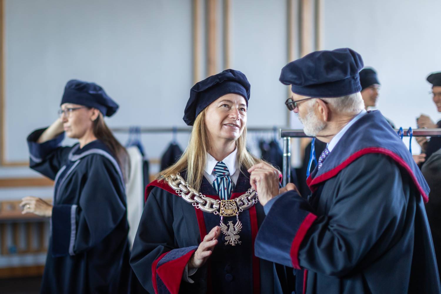 Inauguracja roku akademickiego 2024/2025 na Politechnice Gdańskiej. Nz. prof. Barbara Wikieł i prof. Henryk Krawczyk. 02.10.2024 r. (fot. Krzysztof Mystkowski / KFP)