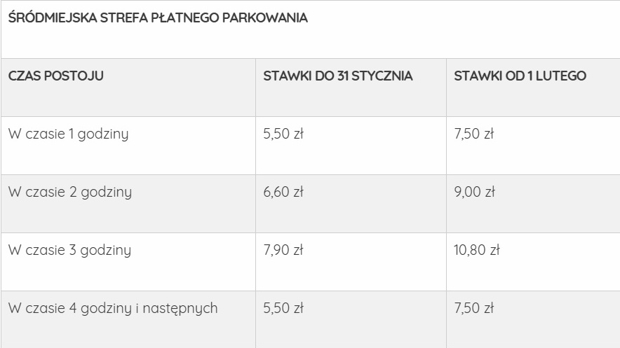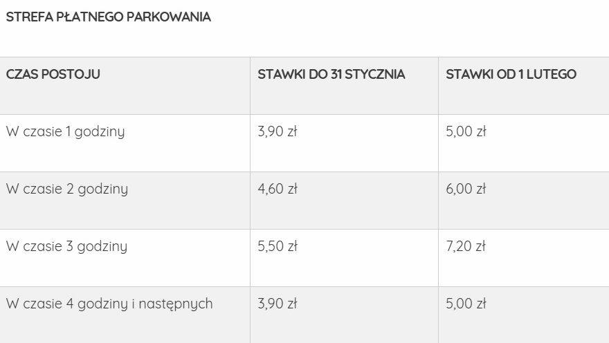 Nie zmienią się natomiast stawki za postój w parkingu kubaturowym przy ulicy Okopowej. Tam pierwsza godzina kosztuje 2,50 zł. Kara za brak biletu wzrośnie z 200 do 300 złotych.