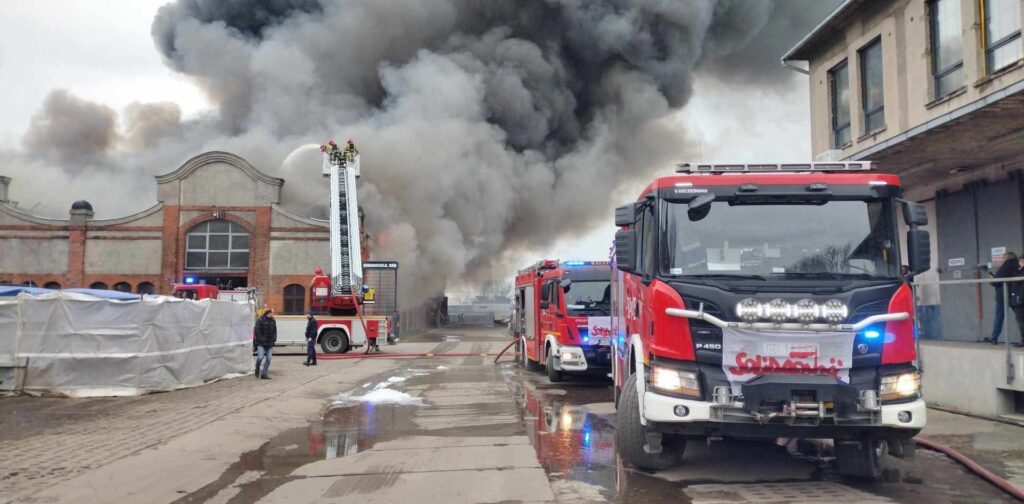 Pożar hali byłych Zakładów Naprawczych Taboru Kolejowego w Gdańsku. Ogień opanowany, ale gaszenie potrwa do rana