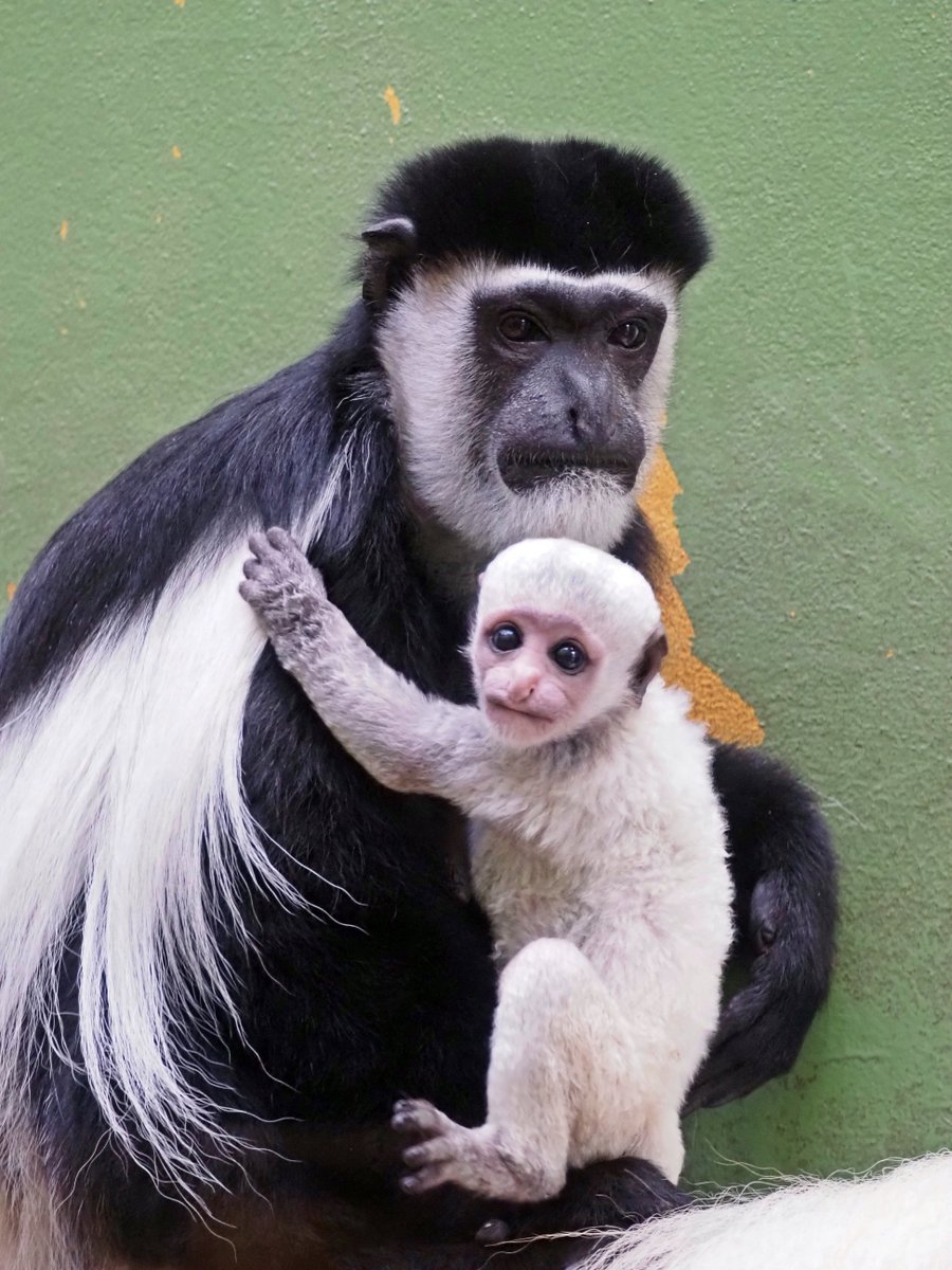 Młodziutka gereza abisyńska jest biała jak śnieżynka (fot. Gdański Ogród Zoologiczny/Anna Olszewska)