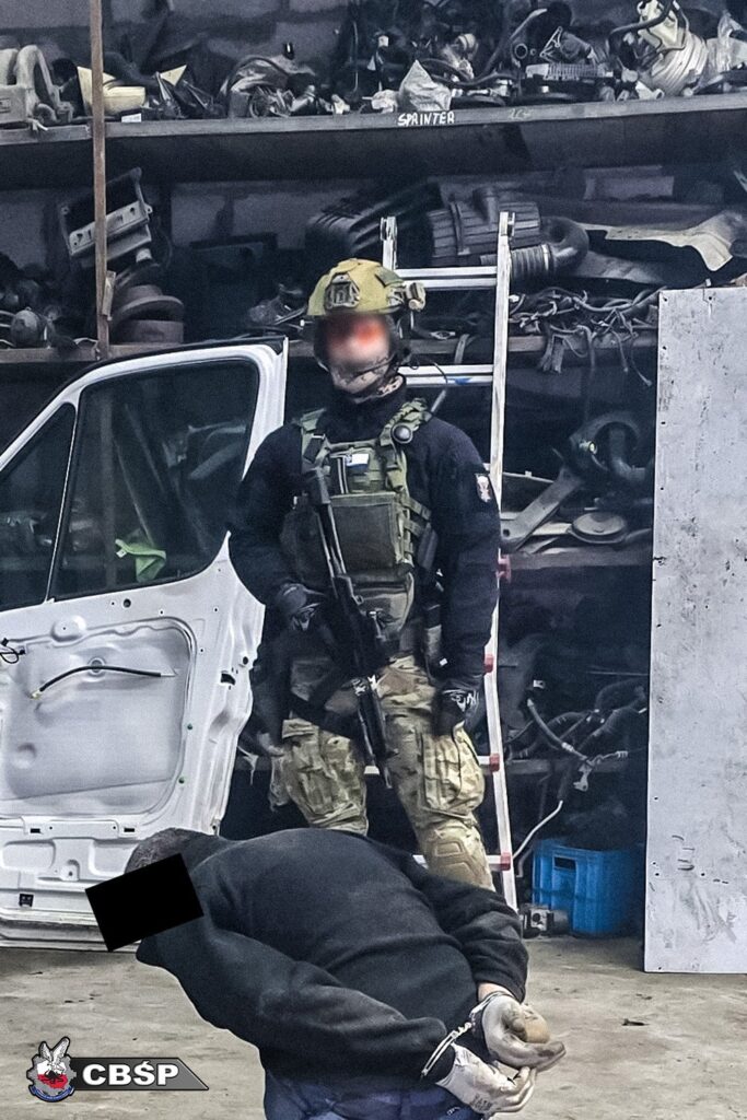 W trakcie przeszukania hal magazynowych policjanci CBŚP zatrzymali członków gangu, zabezpieczyli też dowody – silniki, elementy nadwozia i karoserii pochodzących z kradzieży dokonanych na terenie Polski i Niemiec o wartości blisko 3 mln zł – a także urządzenia elektroniczne służące do kradzieży pojazdów w tym m.in. zagłuszarki sygnałów GPS.