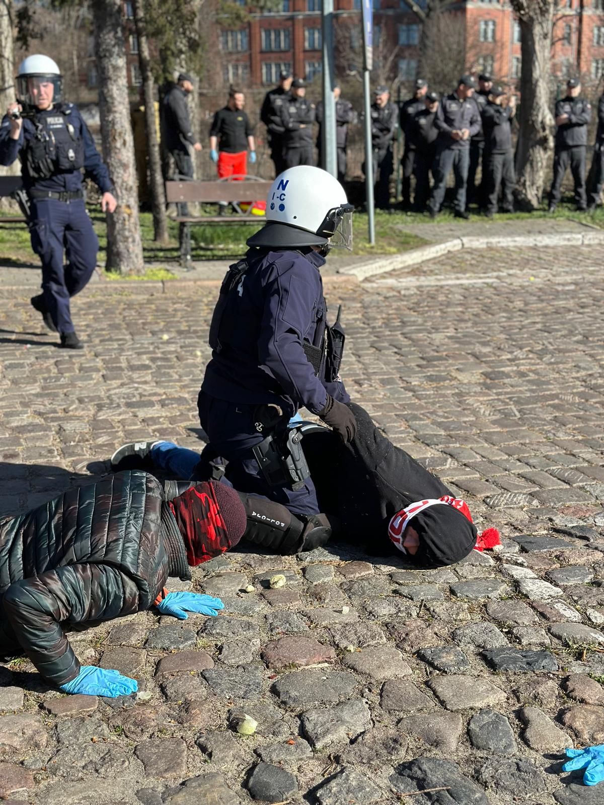 W rolę agresorów wcielili się funkcjonariusze Służby Więziennej, a ich chuligańskie zachowanie było najbardziej widowiskową częścią ćwiczeń. W tle działo się jednak o wiele więcej, ponieważ łącznie zrealizowano prawie 20 różnych zadań, realizowanych przez różne komórki policji.