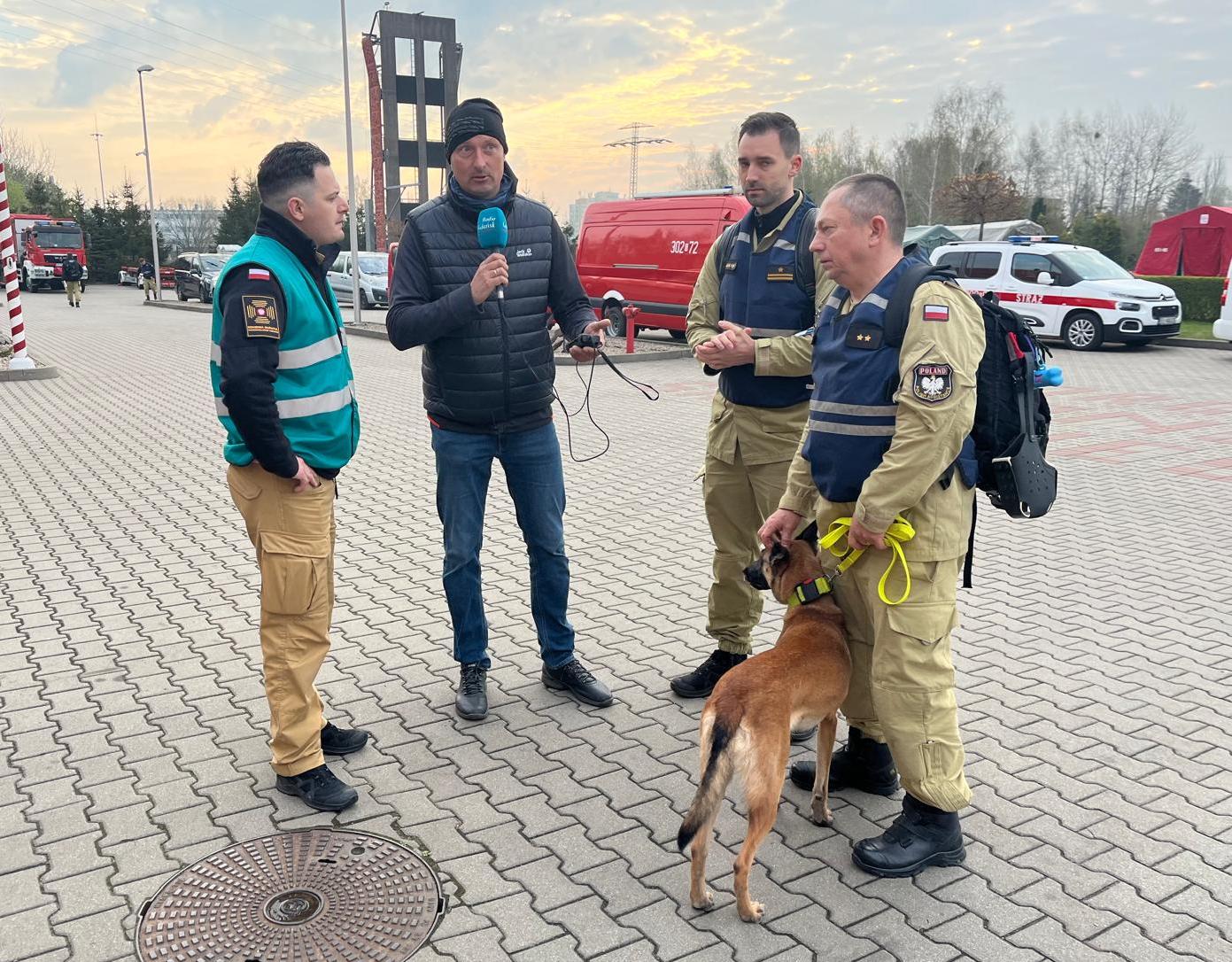 Jak wyjaśnił młodszy brygadier Jakub Filip z Komendy Głównej Państwowej Straży Pożarnej, ratownicy wraz z psami ćwiczą symulowaną akcję podczas trzęsienia ziemi.
