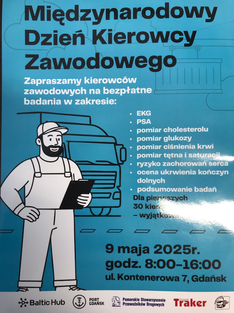 Pakiet badań na zdrowie – taki prezent dla kierowców zawodowych w dniu ich święta przygotowało Pomorskie Stowarzyszenie Przewoźników Drogowych. Akcja profilaktyczna trwa na jednym z parkingów w gdańskim porcie.
