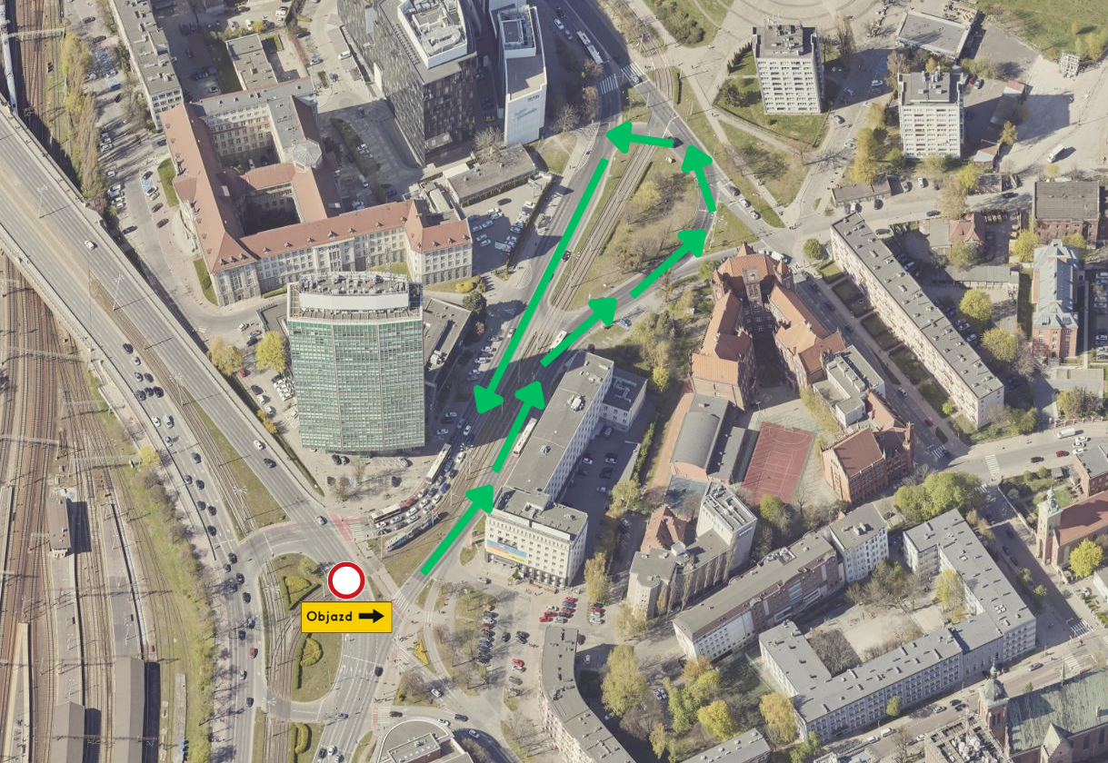 Dla samochodów wyznaczony został objazd przez skrzyżowanie ulic Jana z Kolna – Wały Piastowskie – Łagiewniki.