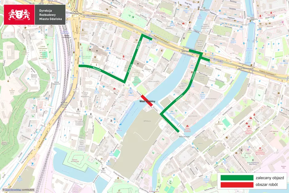 Na czas robót kierowcom zaleca się korzystanie z tras objazdowych. Od strony ulicy Okopowej sugerowany przejazd poprowadzi ulicami Toruńską, Żabi Kruk i Podwalem Przedmiejskim. Natomiast od ulicy Kamienna Grobla rekomendowana trasa objazdu będzie wiodła ulicami Toruńską, Chmielną i Podwalem Przedmiejskim.