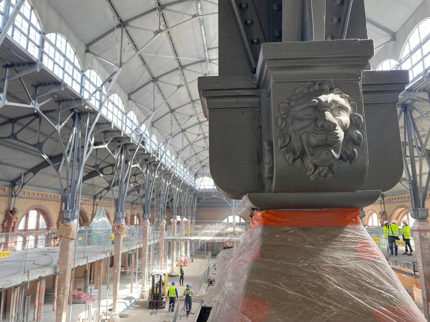 – Wszelkie zabytkowe elementy hali zostały zachowane. Odnowiliśmy konstrukcję stalową – wypiaskowaliśmy ją, by nie uszkodzić istniejącej struktury, a następnie zabezpieczyliśmy przeciwpożarowo. Wszystkie ceglane ściany zostały już oczyszczone z tynku, farby i innych warstw – powiedziała Katarzyna Dziurnikowska z zarządu APSYS Polska, spółki odpowiedzialnej za rewitalizację hali.