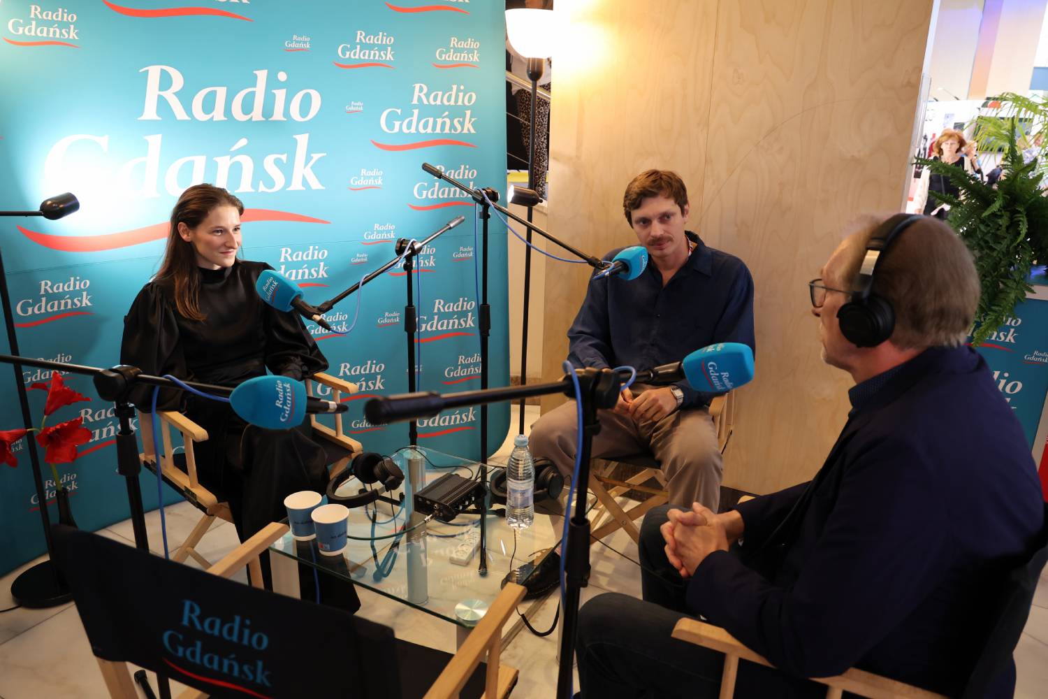 Agnieszka Rajda, Kordian Kądziela, Tomasz Żółtowski w Studiu Festiwalowym Radia Gdańsk. 50. FPFF w Gdyni, 23.09.2025 r. (fot. Radio Gdańsk/Piotr Puchalski)
