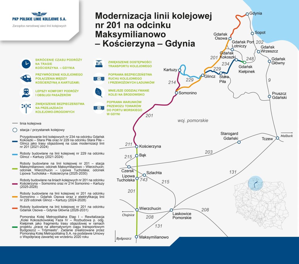 Kolejarze planują między innymi przebudowę stacji Gdynia Wielki Kack i przystanków Karwiny, Stadion, Wzgórze Św. Maksymiliana, budowę i modernizację 40 mostów, wiaduktów i przepustów, wprowadzenie nowego systemu informacji pasażerskiej oraz wymianę nawierzchni kolejowej na odcinku ponad 13 kilometrów.