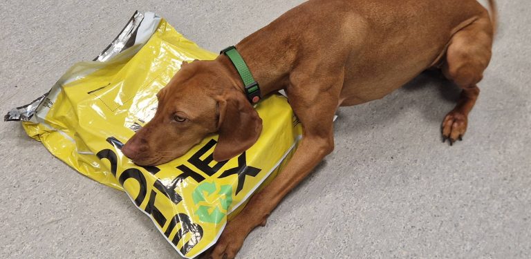 Pies Flara zaprowadził celników do paczki z narkotykami (fot. Izba Administracji Skarbowej w Gdańsku)