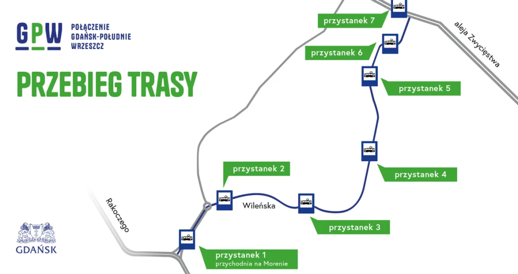 - 7 nowych przystanków, w tym jeden węzeł przesiadkowy autobusowo-tramwajowy,