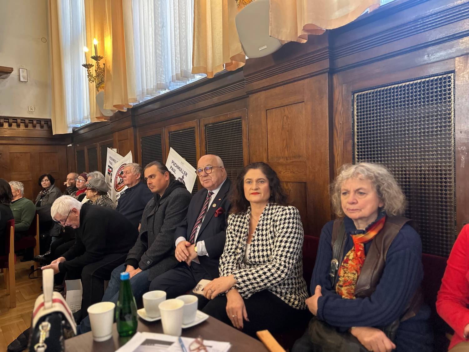 Przeciwnicy budowy pomnika Paula Puchmüllera. W centrum posłanka Dorota Arciszewska-Mielewczyk, 27.11.2025 r. (fot. Radio Gdańsk/Oskar Bąk)