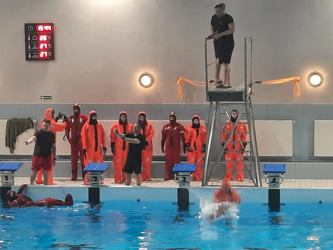 Studenci Uniwersytetu Morskiego w Gdyni trenowali akcje ratunkowe na morzu. Szkolenie pod hasłem „Echa Heweliusza” pokazało, że ratowniczy skok do wody, zakładanie uprzęży ratowniczej czy wchodzenie do tratwy, nawet na bezpiecznej pływalni, nie są proste.