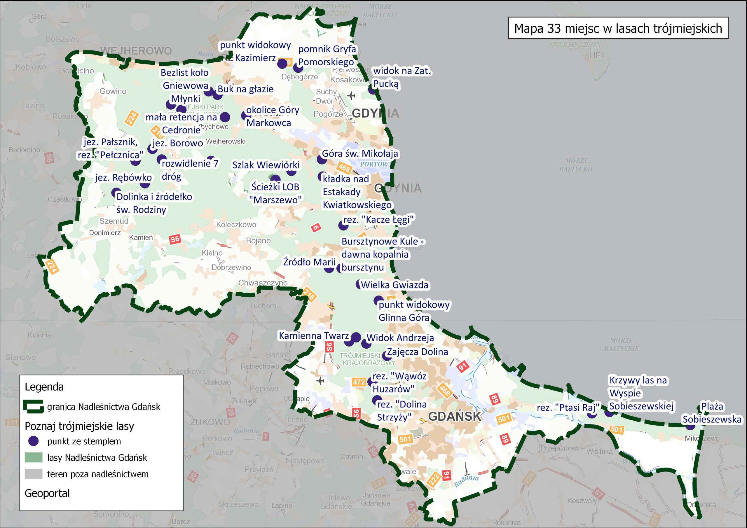 Mieszkańcy wybrali 33 najciekawsze leśne miejscówki w ramach projektu „Poznaj Trójmiejskie Lasy”. W tych lokalizacjach postawiono skrzynki ze suchymi stemplami, które można zbierać jako pamiątki.