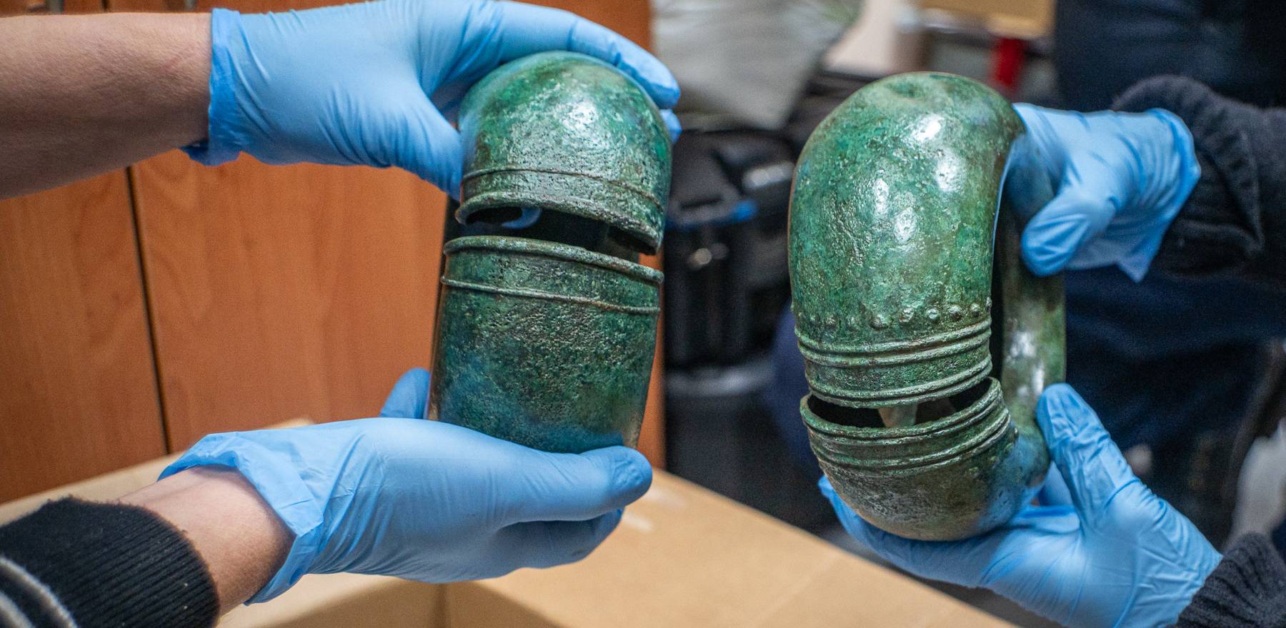 Podczas konserwacji 11 zabytków z początku epoki żelaza, odnalezionych w gdańskich lasach, odkryto dwie dodatkowe bransolety ukryte wewnątrz nagolenników.