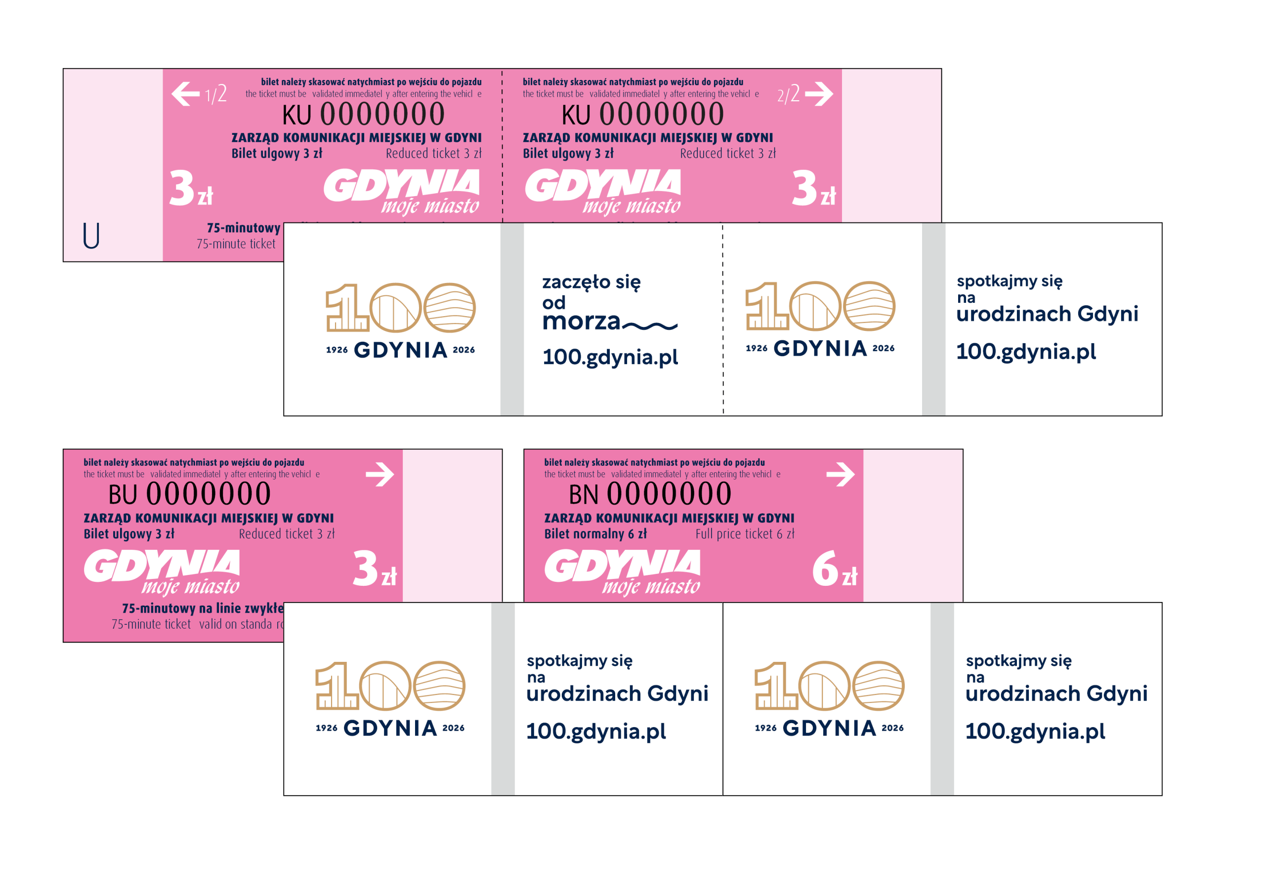 W poniedziałek do sprzedaży trafią urodzinowe bilety przygotowane przez Zarząd Komunikacji Miejskiej w Gdyni. Są na nich trzy grafiki, związane z setnymi urodzinami miasta.