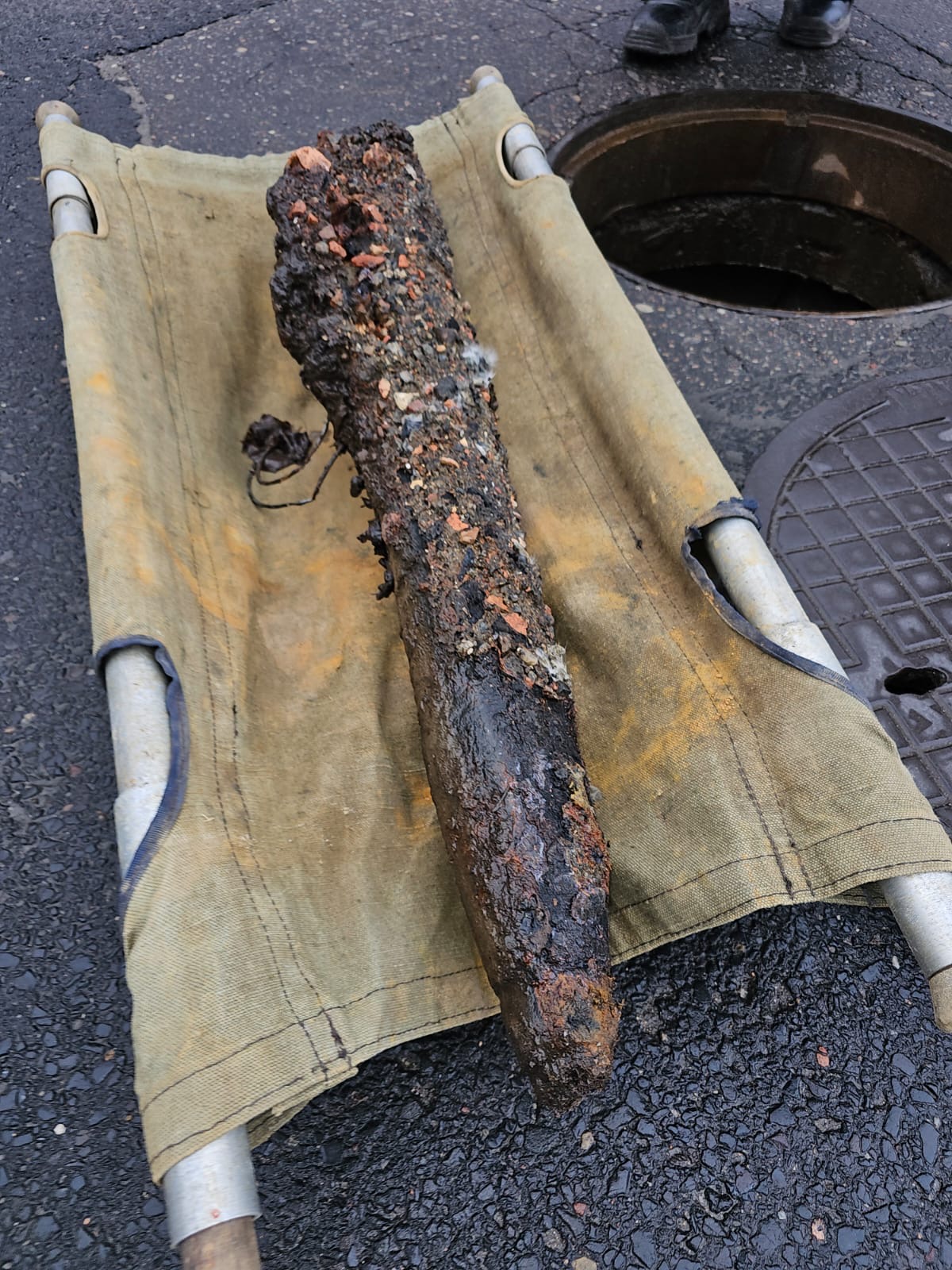 Niewybuch z czasów II wojny światowej znaleziono w kolektorze deszczowym w Gdańsku-Chełmie podczas jego czyszczenia. Obiekt został wykryty dzięki kamerze, która pozwala monitorować wnętrze rur, wykrywać uszkodzenia i zalegające osady bez konieczności ich rozkopywania. Tym razem natrafiono na nietypowe znalezisko, które uznano za potencjalnie niebezpieczne.