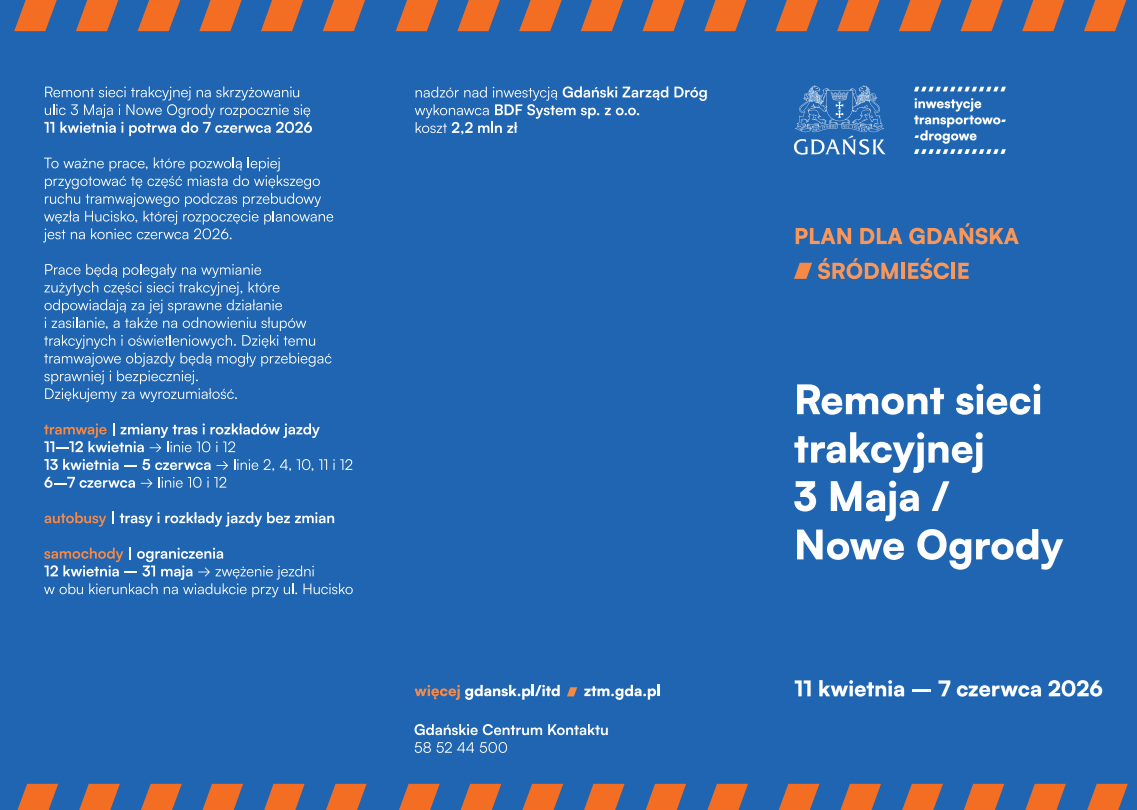 Ulotka informacyjna dotycząca remontów torowisk w Śródmieściu Gdańska (gdansk.pl)
