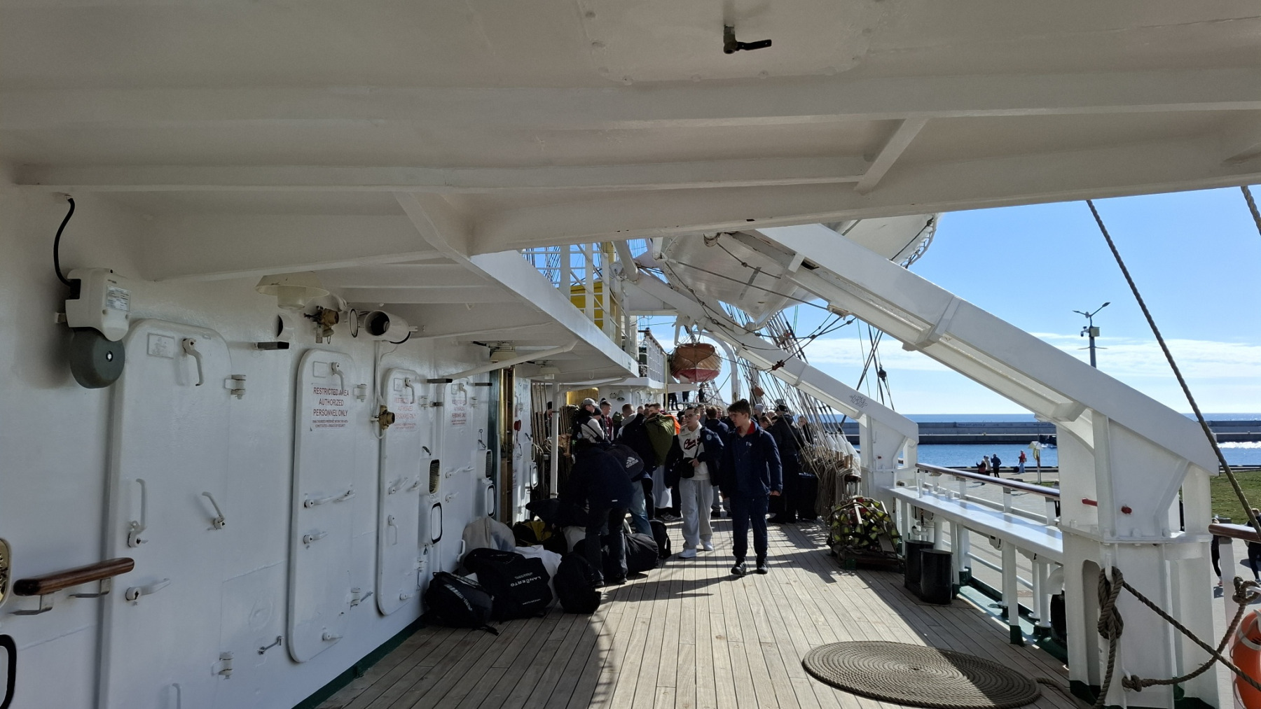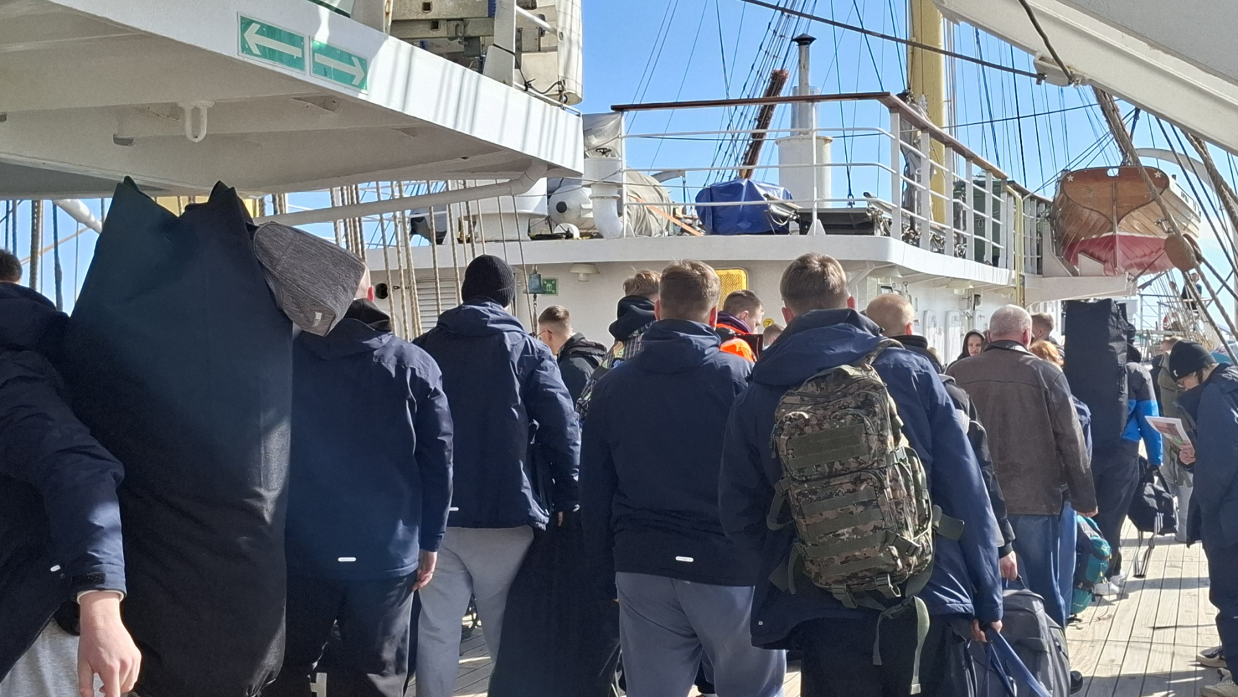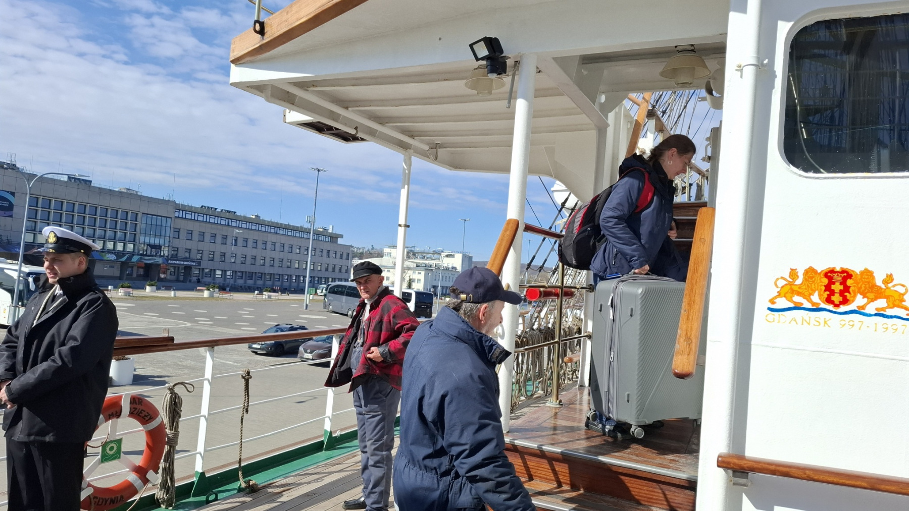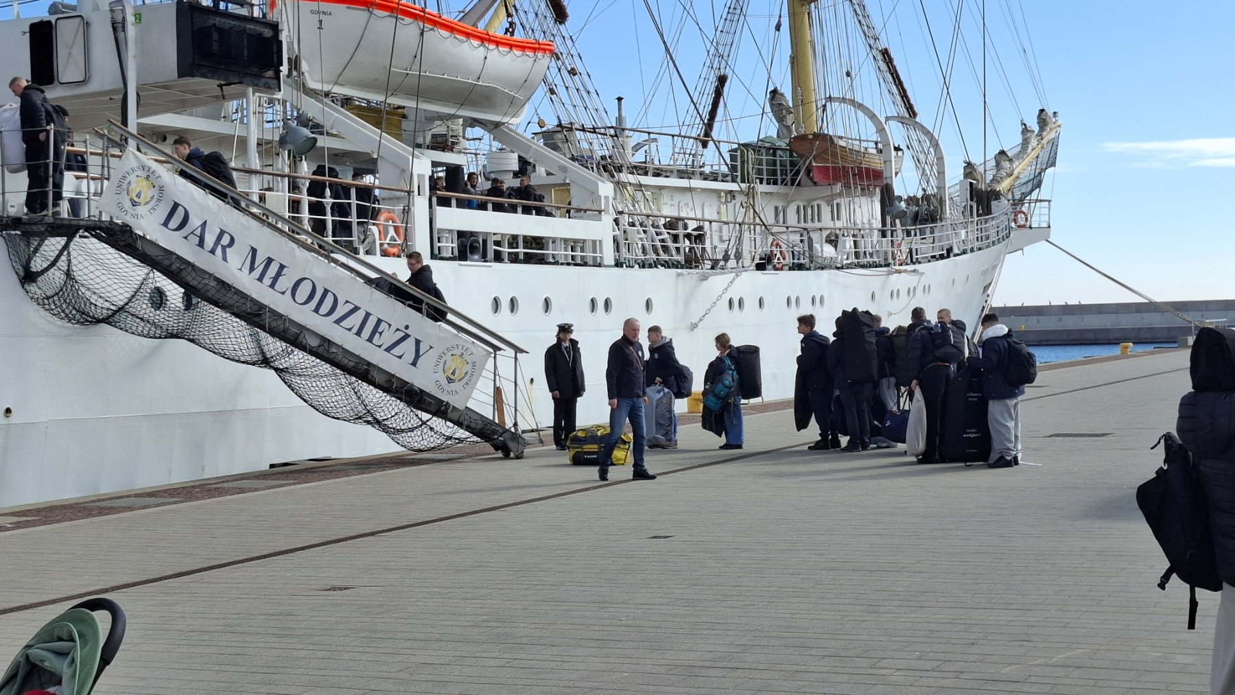 "Dar Młodzieży" wyrusza w rejs do USA. Młoda załoga wchodzi na pokład, 11.04.2026 r. (fot. Radio Gdańsk/Anna Rębas)