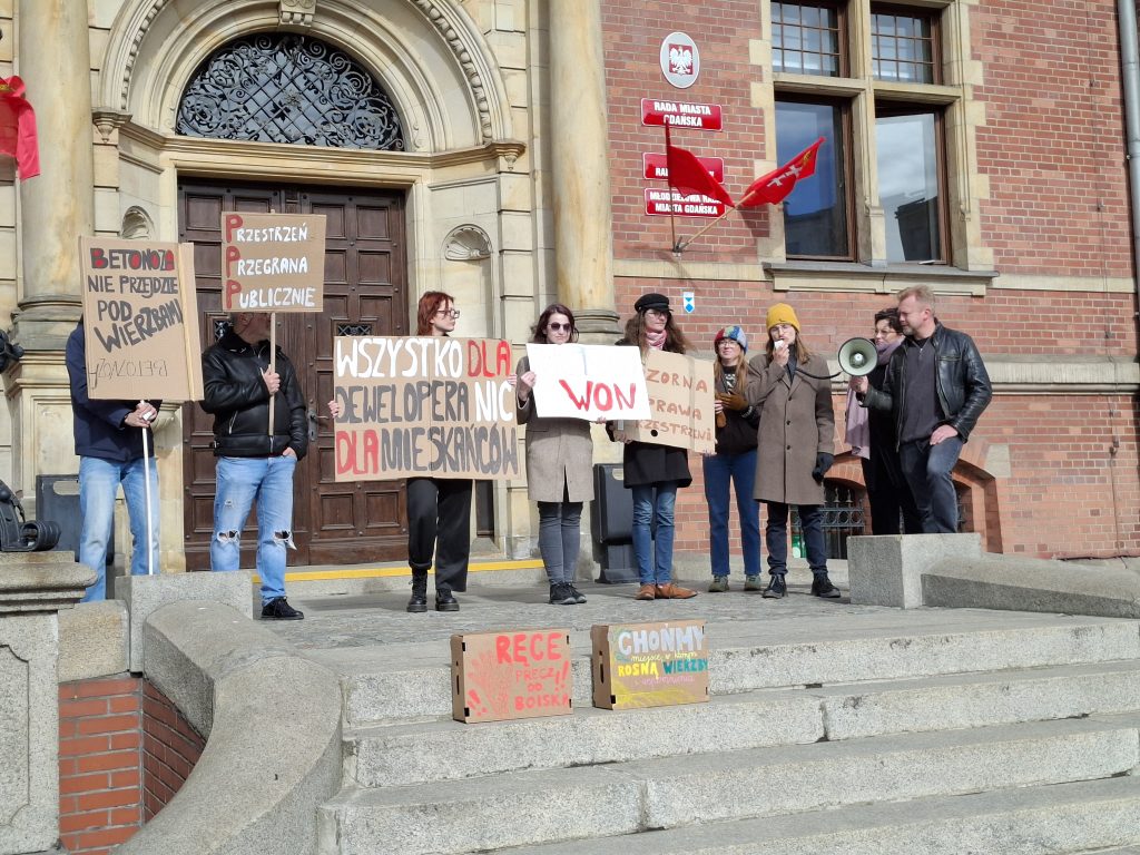Jeszcze przed rozpoczęciem protestu konferencję ws. poparcia protestujących zorganizowali radni Prawa i Sprawiedliwości. – Mieszkańcy chcą ochronić swój teren, chcą obronić boisko, które jest ważne dla nich, również ze względu na cele publiczne. Naszym zdaniem Gdańsk musi być dla mieszkańców, a nie dla deweloperów – mówił Andrzej Skiba, radny PiS.
