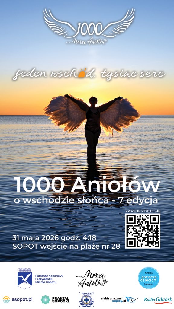 Już po raz siódmy inicjatywa społeczna Morza Aniołów z Sopotu zaprasza do dołączenia do akcji charytatywnej „1000 Aniołów o wschodzie słońca 31.05.2026 rok – 7 edycja”.