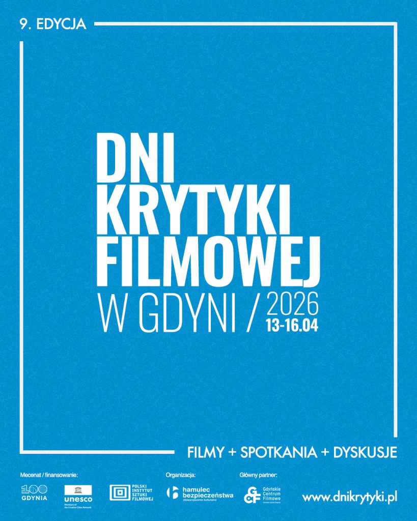 W dniach 13–16 kwietnia w Gdyńskim Centrum Filmowym odbędzie się 9. edycja przeglądu Dni Krytyki Filmowej. Seanse wyjątkowych i odważnych filmów, często nagradzanych na światowych festiwalach filmowych, do tego znawcy kina – dziennikarze i krytycy filmowi oraz długie dyskusje z publicznością. Przegląd stwarza przestrzeń do rozmów o kinie, o filmach i tematach, które się w nich pojawiają. Formuła wydarzenia ma zachęcać do świadomego odbioru dzieła filmowego, jego krytycznego oglądu i polemiki.