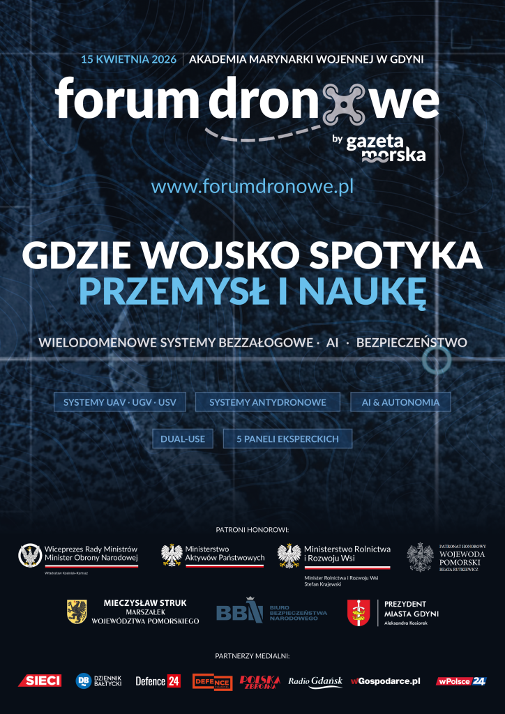 Już 15 kwietnia w Akademii Marynarki Wojennej w Gdyni odbędzie się jedno z najważniejszych wydarzeń w Polsce poświęconych rozwojowi systemów bezzałogowych – AMW UAV Forum 2026. Organizatorem wydarzenia jest KPH Group Sp. z o.o., wydawca Gazety Morskiej i Daily Mare, razem z Akademią Marynarki Wojennej, Wydziałem Nauk Humanistycznych i Społecznych AMW oraz we współpracy z Bałtyckim Klastrem Morskim i Kosmicznym.