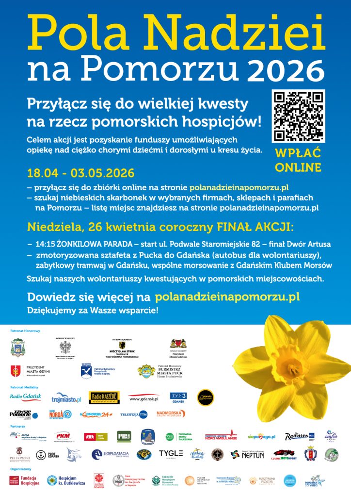 Tysiące żonkili, barwna parada i prawie 4000 wolontariuszy – już w niedzielę 26 kwietnia po raz kolejny połączymy siły dla pomorskich hospicjów podczas finału Pól Nadziei na Pomorzu. Akcję organizuje siedem hospicjów z regionu, które każdego dnia wspierają dzieci i dorosłych zmagających się z ciężkimi chorobami oraz ich bliskich.