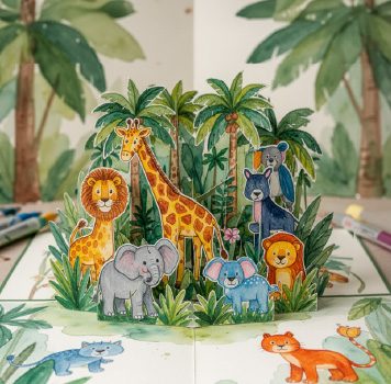 Każda rodzina zabierze do domu własną, gotową pop-up kartkę (albo mini-serię kartek) — wyjątkową pamiątkę i małe dzieło sztuki, które można wręczyć komuś w prezencie lub zachować jako dekorację.